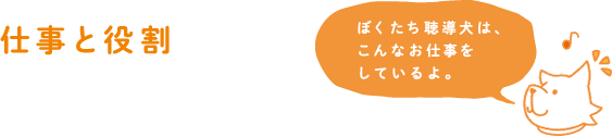 聴覚障がいは見た目では分からない障がいです。そのため必要なサポートが受けにくいのですが、聴導犬が聴覚障がいの目印になることで、サポートが受けやすくなります。また、自分から聞こえないということを1回1回説明することもなくなります。聴導犬は音を知らせるという仕事の他に、聴覚障がいの目印になるという役割もあり、様々な場面で聴覚障がい者をサポートしています。